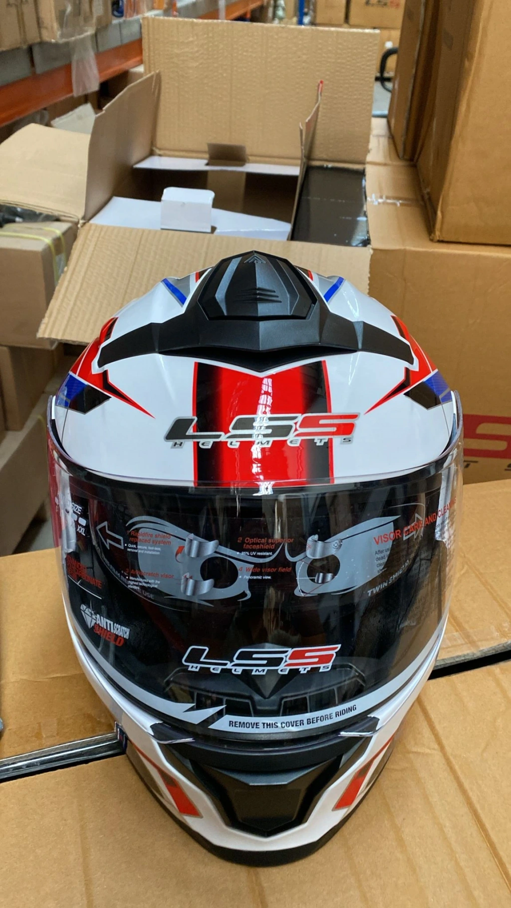 Çene Açılır Kask Ls5 Beyaz-mavi-kırmızı
